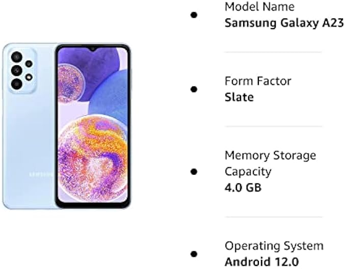 SAMSUNG Galaxy A23 (SM-A235M/DS) Dual SIM,64 GB 4GB RAM, Factory Unlocked GSM, International Version - No Warranty - (Blue)