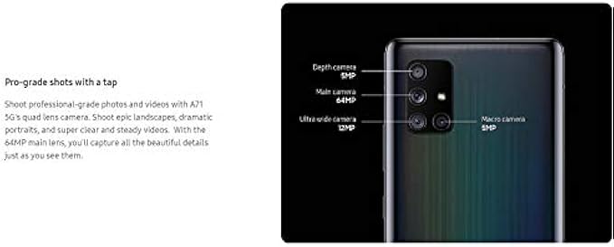 2G GSM: 850, 900, 1800, 1900MHz; 3G UMTS: B1(2100), B2(1900), B4(AWS), B5(850), B8(900); 4G LTE: B1(2100), B2(1900), B3(1800), B4(AWS), B5(850), B7(2600), B12(700), B13(700), B14(700), B20(800), B25(1900), B26(850), B28(700), B29(700), B30(2300), B66(AWS-3), B71(600); 5G: N2(1900), N5(850), N66(AWS-3) 6.7" Super AMOLED Plus Display FHD+, 1080 x 2400 pixels, 20:9 ratio, Android 10.0, One UI 2, Single SIM (Nano-SIM), Under Display Fingerprint 128GB ROM, 6GB RAM, MicroSD (Up to 512GB), Qualcomm 7250 (Snapdragon 765G), Octa-core (2x2.2 GHz Cortex-A77 & 6x1.8 GHz Cortex A55) Rear Camera - 64 MP (F1.8) + 12 MP (F2.2) + 5 MP (F2.4) + 5 MP (F2.2), Front Camera - 32 MP (F2.2), 3.5mm Jack: Yes, 4500 mAh Battery AT&T Unlocked Version. Compatible with Most GSM Carriers like T-Mobile, AT&T, MetroPCS, etc. Will NOT work with CDMA Carriers Such as Verizon, Sprint.