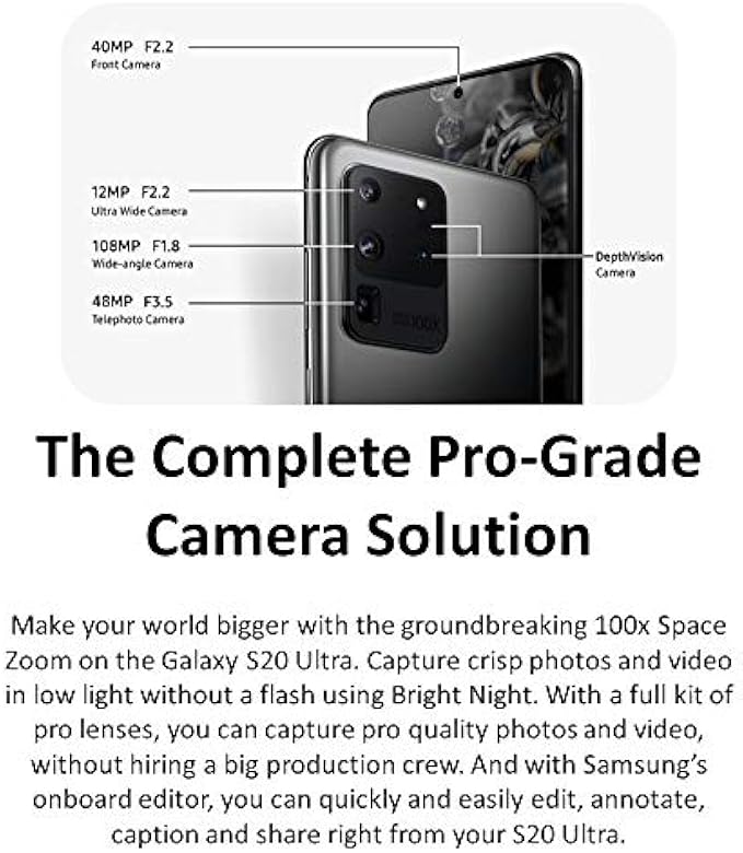 Samsung Galaxy S20 Ultra, 128GB, Cosmic Gray - Fully Unlocked (Renewed)