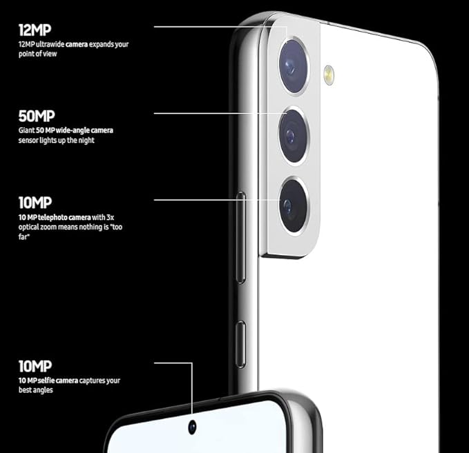 • Rear Camera: 50MP, f/1.8 + 10MP, f/2.4 + 12MP, f/2.2, Front Camera: 10 MP, f/2.2, Android 12, One UI 4.1