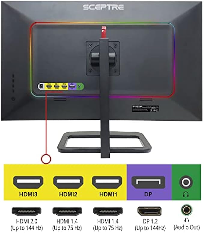 • Multiple Ports: The DisplayPort & HDMI 1 deliver up to a stellar 144Hz refresh rate, providing incredible visibility & agility to dominate all gaming competition. The HDMI 2 & 3 provide impressive QHD at up to 75Hz.