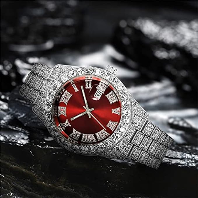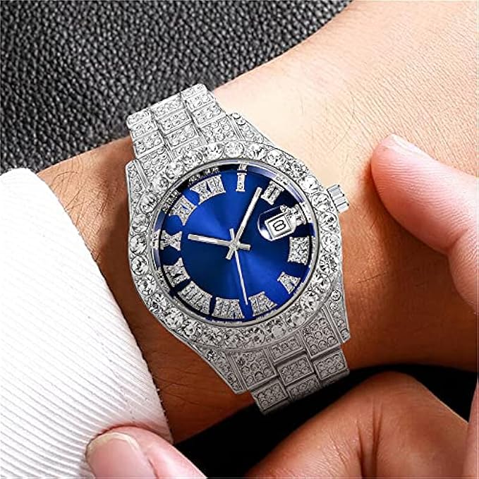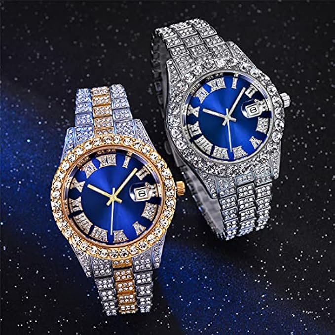 Iced out diamond studded Watches With Roman Numerals Dial, it is sparkling under the light,very stylish and beautiful.This watches is great for daily and party wear, making you the shining star in all occasions.
