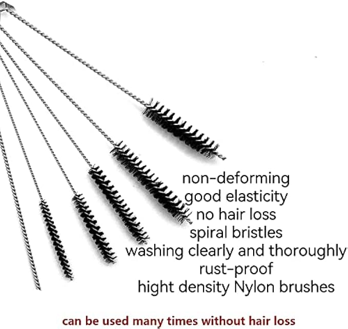 Features - These cleaning tools are helical, Made of high density Nylon brushes and stainless steel material, It's rust-proof, Non-deforming with good elasticity and Spiral bristles, No hair loss, Great access to the inner side, Making the washing clearly and thoroughly.