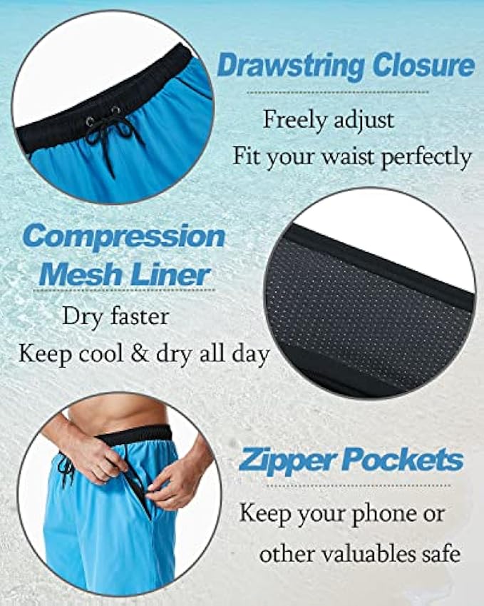 【Applicable for】Compression lined swim trunks perfect for swimming, surfing, sailing, kayaking, beach vacation, leisure, volleyball, walk, family picnic and etc, you can wear these all year-round if live in a warm climate. If you have athletic muscled legs, you can try go up one size range larger in inches on the size chart