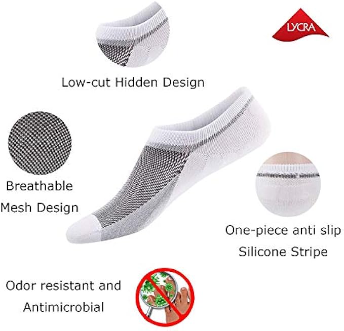 No show and non slip: Low cut on the top makes your feet completely invisible in sneaker and some low cut style shoes. Anti-slip silicone in heel prevents socks from sliding down.