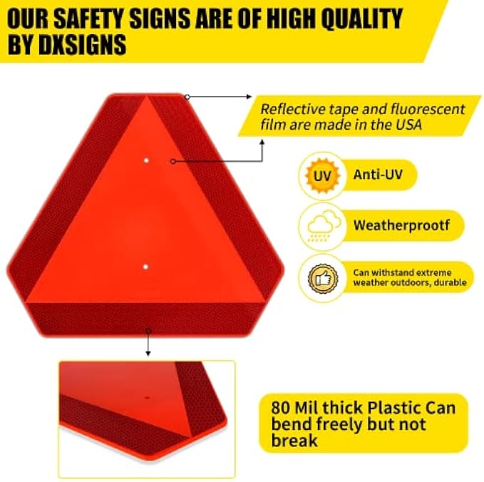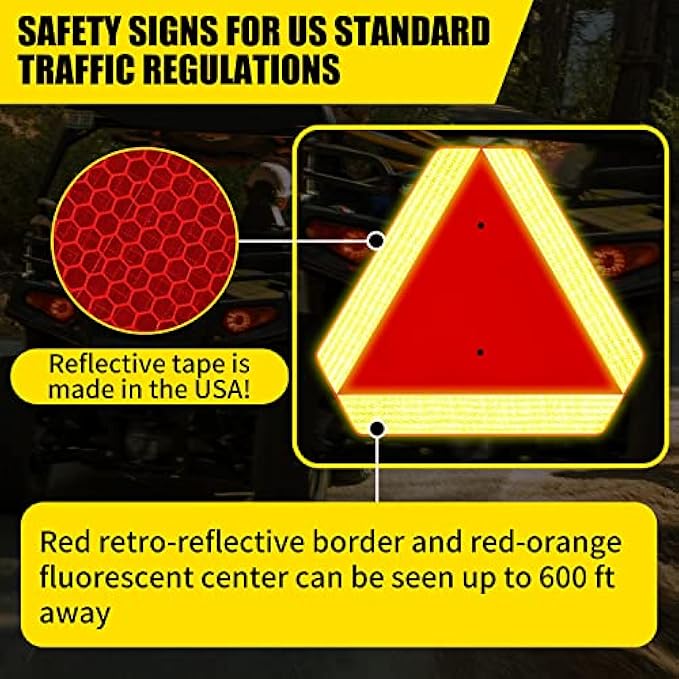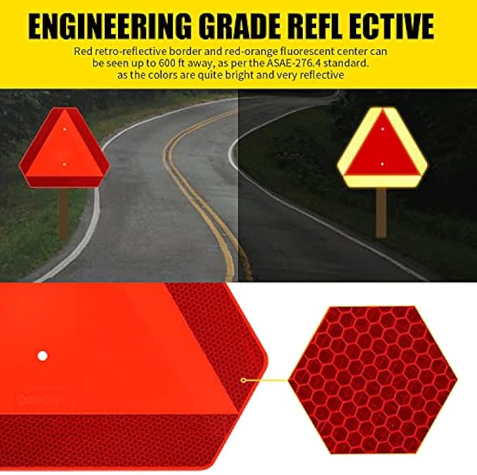 MEET TRAFFIC REGULATIONS:Highly reflective retro-reflective border and red-orange fluorescent center make it visible up to 600 ft away, meeting ASAE-276.4 standards