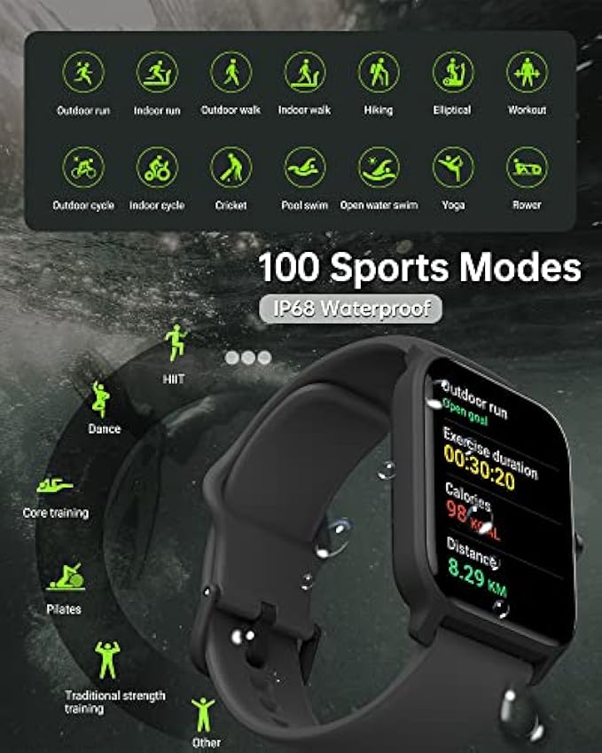 • 【100 Sport Modes & IP68 Waterproof】It supports 100 sports modes such as swimming, running, rock climbing, yoga and so on. Help you understand your limits and adjust your exercise plan to achieve your exercise goals. Connecting with the Veryfit application, can use more convenient functions, such as pedometer, etc. It has IP68 waterproof standard, so you don't have to worry about washing your hands, face or even sweating when using it. (Do not use for baths, saunas, hot springs, etc.)