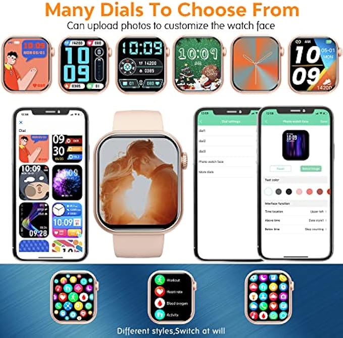 • ?【1.88" HD Large Screen & Customized Watch Faces】Using the 2023 latest technology, this blood pressure watch for android ios phones is equipped with a 1.88" 286*340 ultra-clear full-touch color screen. We have carefully designed beautiful 3 UI menu and multi-watch faces for you, and you can also upload photos through the APP to customize watch faces(can rotate the crown of the call smart watch to change the watch face or double-click the crown to change the UI menu)