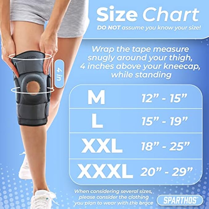 Sparthos Hinged Knee Brace - Relieves ACL, MCL, Meniscus Tear, Arthritis, Tendon Pain - Open Patella Design with Dual Metal Side Stabilizers - Support for Running, Knee Pain, For Men and Women (Large)