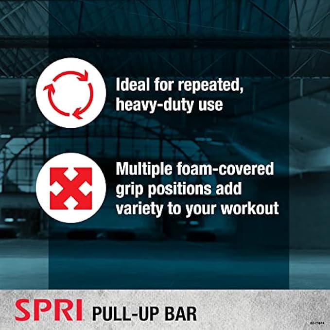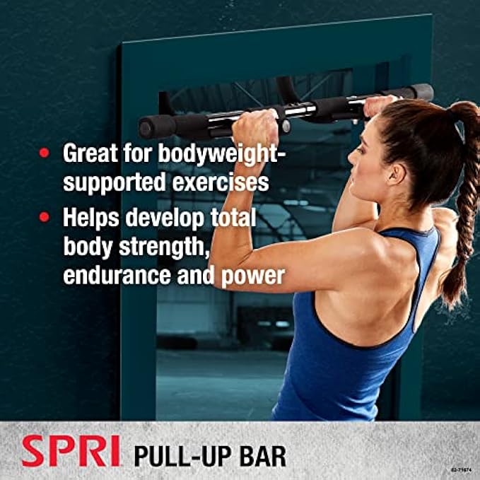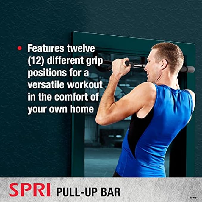 Strength Training Pull-Up Bars - The SPRI pull up bar features 8 grips with 12 different ways to use for a versatile home workout. Train and develop total body strength, endurance, and power with this exercise pull up bar that supports up to 250 lbs.