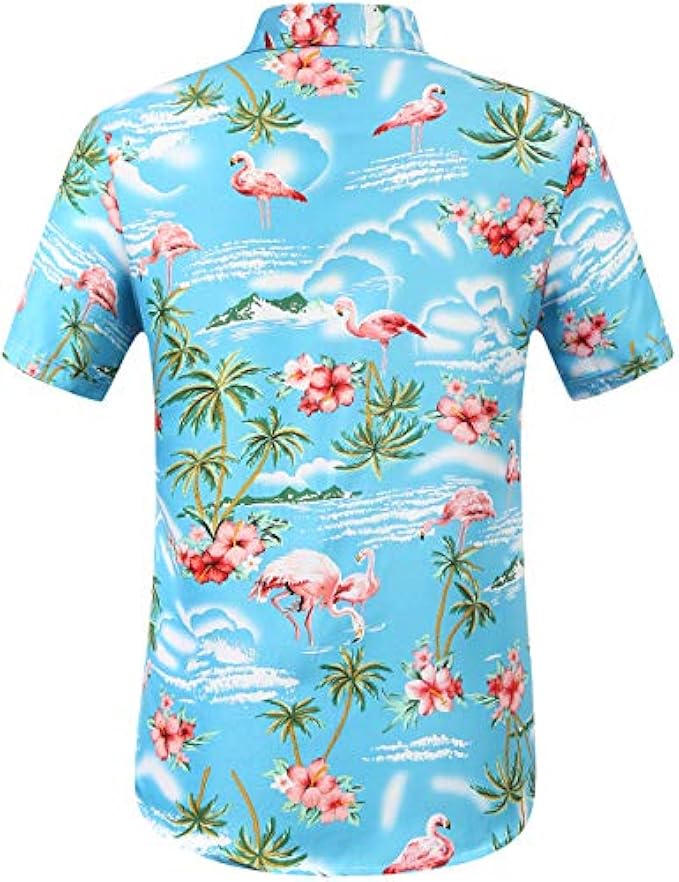 100% Polyester Imported Button closure Tumble dry 【Enjoy Summer Island Style with Our Flamingo Shirt】: Our mens hawaiian shirts features an eye-catching pink flamingo and tropical plant prints that are sure to turn heads. Made of 100% polyester, the fabric is light, soft, and quick-drying, making it ideal for those hot summer days. A bright pink flamingo and tropical print make this hawaiian shirt for men stand out in style. This flamingo hawaiian shirts for men is the perfect summer companion for those looking to rock a beach vibe. 【Soft Fabric, Easy to Care for】: Our mens hawaiian shirts short sleeve not only looks good, but it also offers a high level of comfort. The 100% polyester fabric is soft against the skin, making it comfortable to wear for long periods. Additionally, the quick-drying nature of the fabric means that you won't have to worry about sweat or water leaving you feeling damp and uncomfortable. The hawaiian shirt for men is also easy to care for, making it a convenient choice for your summer wardrobe. 【Hawaiian Shirt for Men Perfect for Every Occasions】: Our mens beach shirts is designed to keep you cool and comfortable even on the hottest days. This mens hawaiian shirts is perfect for any outdoor activity. Whether you're going to the beach, attending a summer party, luau, or just relaxing at home, this beach shirts for men will bring island vibes to your wardrobe. This hawaiian shirt for men can be paired with Hawaiian shorts, casual pants and even jeans, making it incredibly versatile. 【Great Gift For Him】: You can't go wrong with a hawaiian shirt for men. Our button up hawaiian shirt for men make for a great gift for any fashion-conscious man in your life, whether he's a beach bum or just looking to add some tropical flair to his wardrobe." Featuring a soft fabric, bright colors and vivid prints, Our mens beach shirts also make great gifts for Father's Day, Valentine's Day, Christmas, and more. With its soft and fun look for men, it is a great gift for him that he will love. 【100% Satisfaction Guarantee】: You can trust that the hawaiian shirt for men you purchase will exceed your expectations. Our 100% satisfaction guarantee means that if you're not completely satisfied, you can return it for a full refund or an exchange. Our mens hawaiian shirts will keep you comfortable and cool during the summer months. Your satisfaction is our top priority, so you can trust our funny hawaiian shirts for men to provide maximum comfort and breathability to keep you cool!