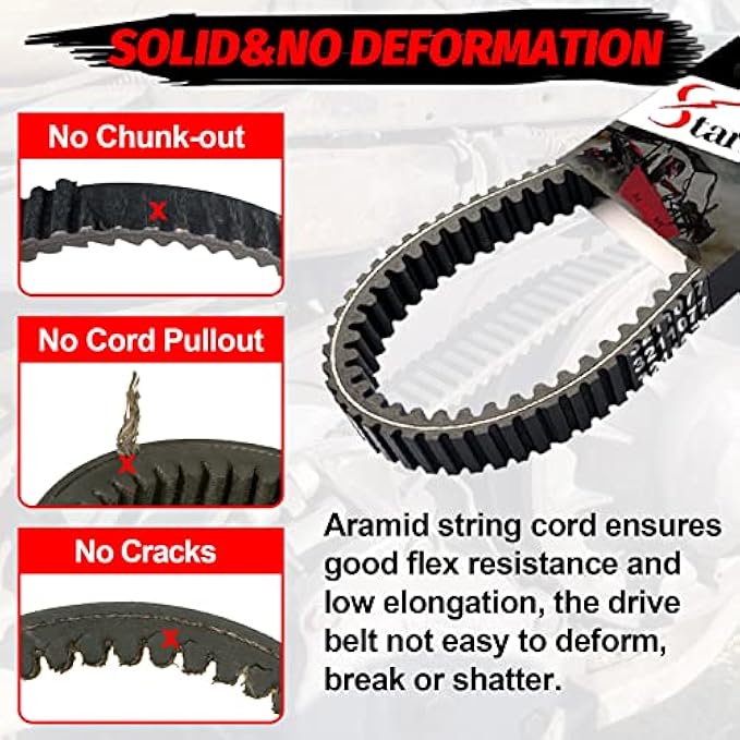✬【NO SLIPPERY】Nylon fiber increases the friction between the drive belt and sheaves, and improves its transmission efficiency, which is not easy to slip, and can strengthen the service life of the ranger drive belt and pulley ,also give it way more power to drive.