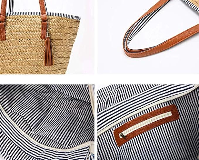 Unique and Classic design: The straw beach bag is casual style, lightweight and soft. Perfect for summer travel, beach party. With soft fabric lining. Keeps your belongings safe, day after day.