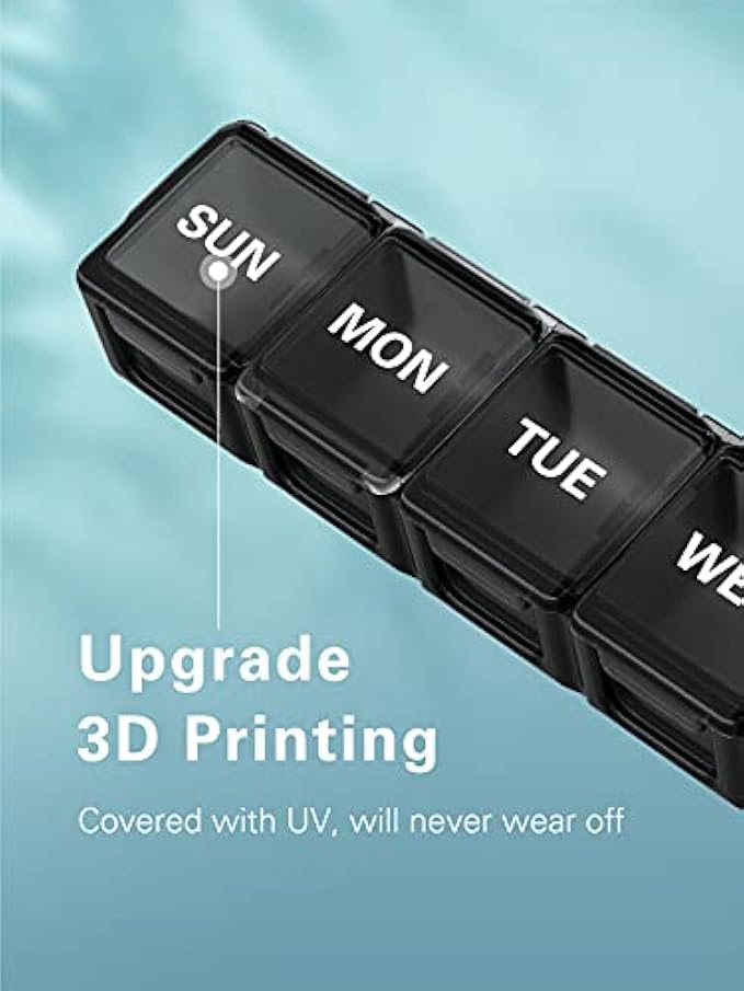 NO NEED TO REMEMBER & OVER 10 YEARS OF USE: Days of the week marked on lid let you know what to take today, upgraded printing guarantees up to 10,000 times of use without wear to tear.