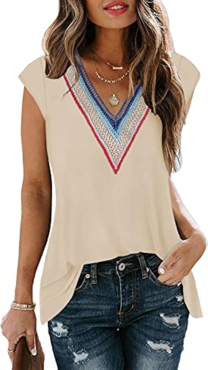 • ❤Features:Tank Tops for Women Loose Fit,Cap Sleeve,Sexy V Neck,Short Sleeve ,Solid Color,Basic t shirts,Floral Printed, Stripes ,Lace Shirts, Casual Sleeveless T Shirts Sexy Elegant