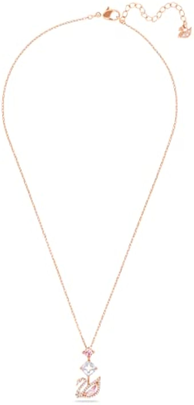 Items delivered: 1 x Swarovski Dazzling Swan Collection Pendant, 14 7/8 inch rose-gold tone plated chain, 7/8 x 5/8 inch pink and clear crystal swan pendant, with Swarovski necklace box