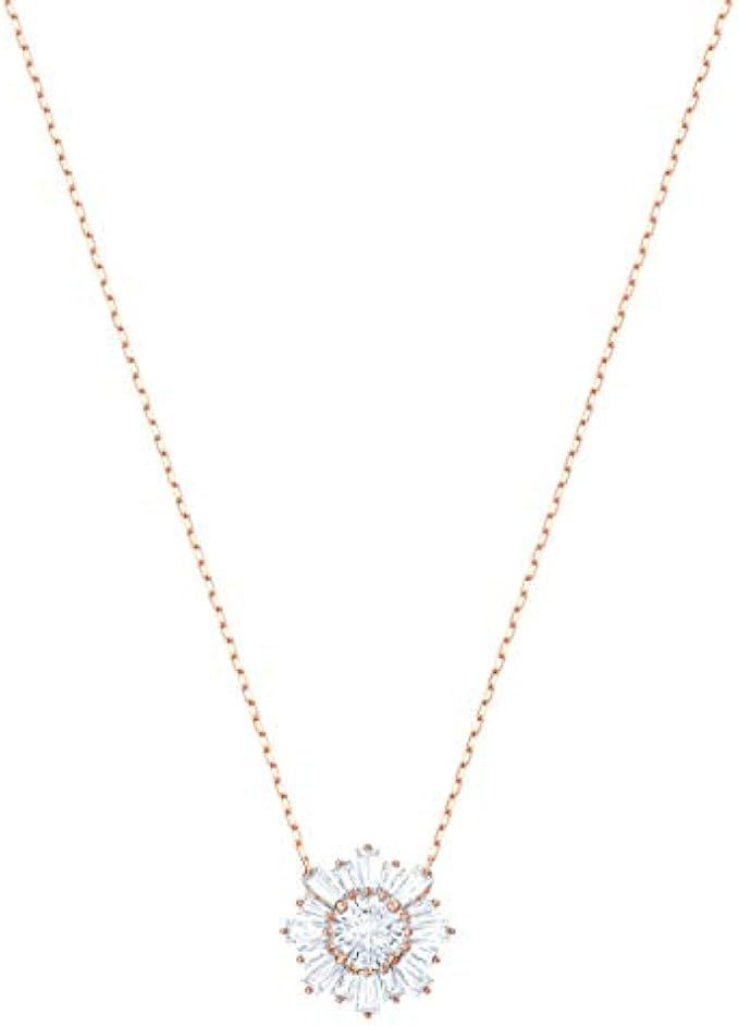 • Items delivered: 1 x Swarovski Sunshine pendant for women, 14 7/8 inch rose-gold tone plated chain, with sparkling white crystals in a unique sunshine pendant, with Swarovski necklace box