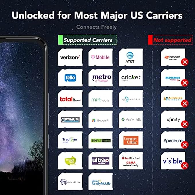 • Unlocked Smartphone - The TCL 30XL works with most major U.S. carriers, including Verizon, AT&T and T-Mobile. This android phone is also compatible with Tracfone, Straight talk, Metro PCS, Simple Mobile, Cricket, Ultra Mobile, H2O, Tello, Consumer Cellular, RedPocket (Only GSMA network), Pure talk, Viya, etc. This cell phone isn't compatible with Visible or CDMA networks, such as Assurance wireless, Spectrum, Xfinity, Boost Mobile, etc.