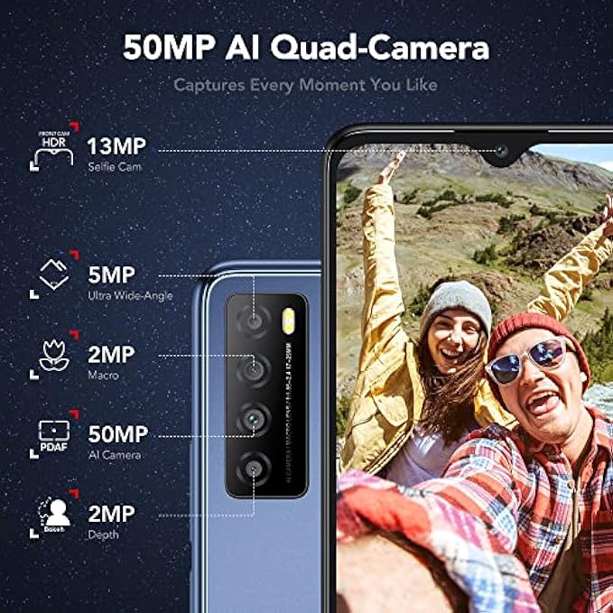 • Powerful, Smooth and Safe - With the 6GB Ram storage and Octa-Core processor, this unlocked cell phone provides you with an instant response time. Keep all of your precious memories with the 64GB built-in storage, and even more with a Micro SD card (sold separately) that lets you add up to 512GB memory. You can also multitask smoothly thanks to the Android 12 operating system and the floating window mode. The phone’s face unlock technology brings a carefree experience with abundant joy.