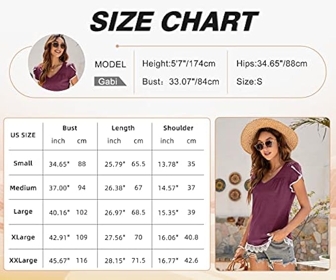 TCOT Women's Tops Petal Cap Sleeve Lace Trim V Neck Summer Cute Pleated Blouses Shirts for Women