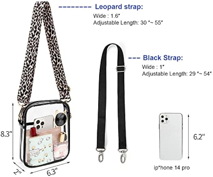 ✅ Waterproof & Premium Material: The clear crossbody bag is water-resistant, which is made of 0.5mm thick waterproof pvc to keep the items of the bag from getting wet from rain and sweat. But please do not soak in water.