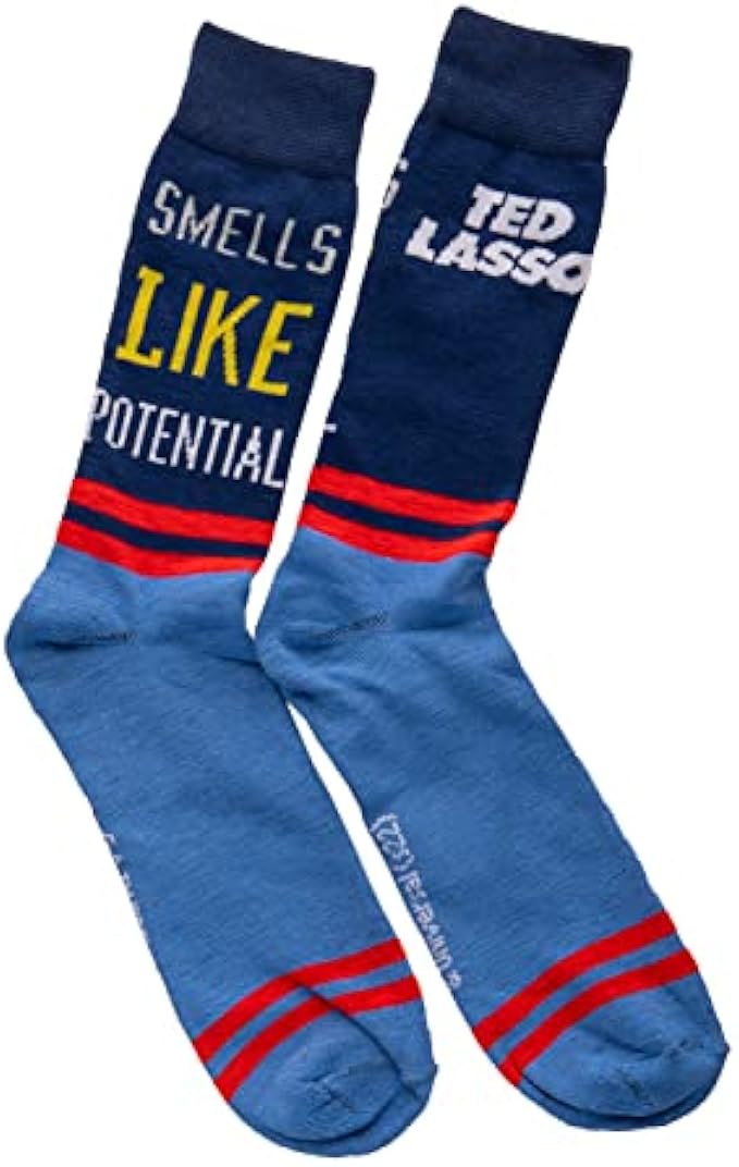 SMELLS LIKE POTENTIAL: Fans have fallen in love with the motivational character Ted Lasso and now they can take him everywhere they go on their socks. Perfect subtlety to give school or office attire an exciting boost.