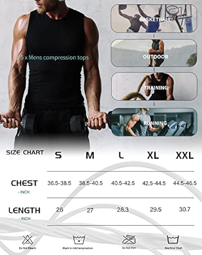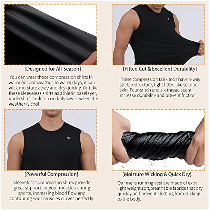 [Designed for All-Season] You can wear these compression shirts in warm or cool weather. In warm days, it can wick moisture away and dry quickly. Or take these sleeveless shirts as athletic baselayer, undershirt, tank top or daily wears when the weather is cool.