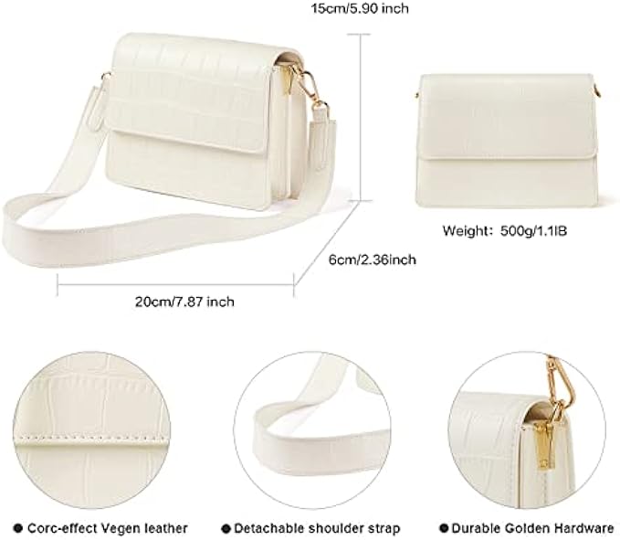 High Quality Crossbody Bag - This white crossbody bags for women is made of PU leather and gold tone hardware. PU leather is durable and dirt resistant. Easy to clean, just wipe with water to keep this cross body bag purse looking new.