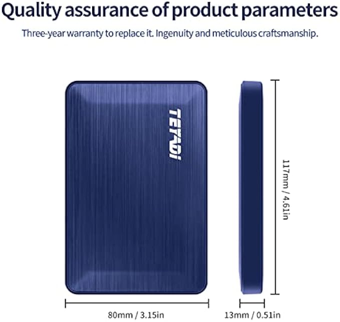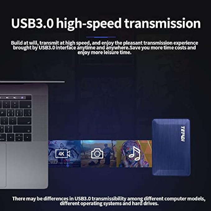 2.5" HDD External Hard Drive supports Windows / Mac / Linux / Android. TEYADI external hard drive can be connected with multiple devices like PC, Laptop and MAC. It improves performance by transferring data at lightning speed. Our Portable hard disk's USB 2.0/3.0 version provides read and write speeds up to 10 Gbps .