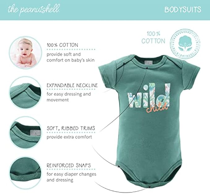 • SOFT 100% COTTON CLOTHING: Knit cotton is the top choice of many parents for its cozy, breathable qualities. You’ll love these soft, 100% cotton baby clothes. You can also use the bodysuits as pajamas or daytime clothes