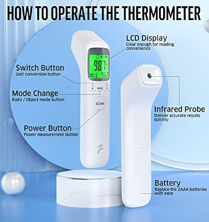 Dual Mode -- This digital thermometer is designed for adults, infants and elders. It not only could measuring temperature as forehead thermometer ,switching measurement mode at any time to take object temperature easily.And free choice of degrees Fahrenheit or Celsius.