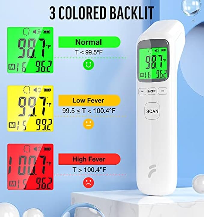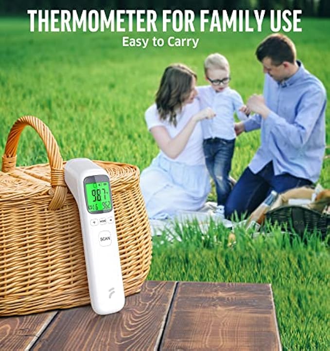 Fast and Easy to Use --Taking your temperature with this baby thermometer is as simple as pointing and pressing a button,it comes with fever alarm. A maximum of 32 previous readings is available ,It is more convenient to help you track the changes of body temporal temperature, monitor the health of family members.
