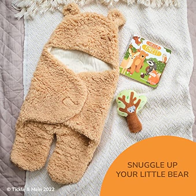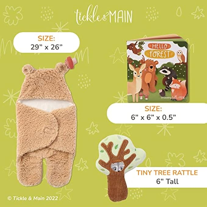 Tickle & Main Forest Friends 3-Piece Gift Set, for Infants 0-12 Months, Includes Storybook, Bear Swaddle Blanket and Plush Tree Rattle