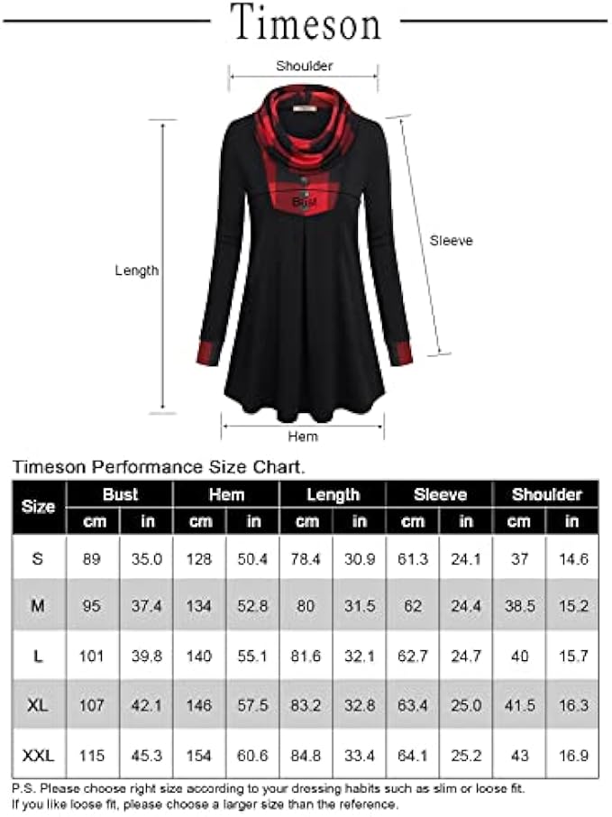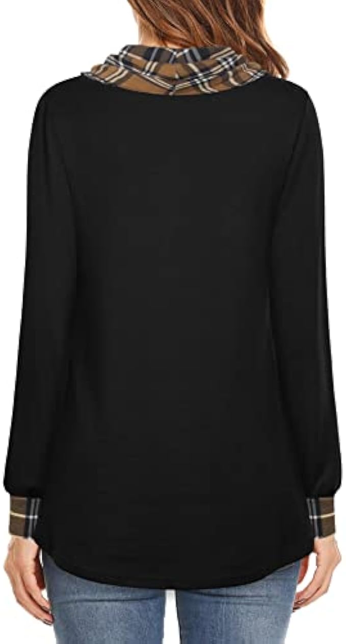 Timeson Women's Long Sleeve Cowl Neck Tunics Tops Plaid Winter Ladies Sweatshirts