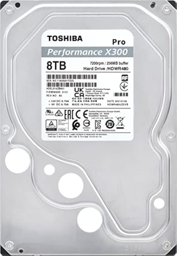 Toshiba X300 PRO 8TB High Workload Performance for Creative Professionals 3.5-Inch Internal Hard Drive – Up to 300 TB/Year Workload Rate CMR SATA 6 GB/s 7200 RPM 256 MB Cache - HDWR480XZSTB