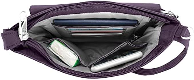Travelon Women's Anti-Theft Classic Mini Shoulder Bag Sling Tote, Purple, One Size