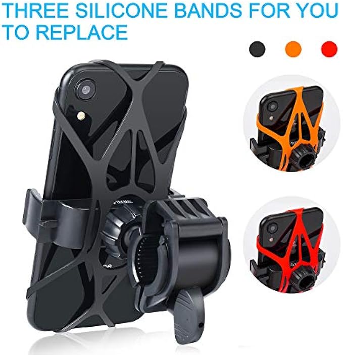 【3 Silicone Butterfly Bands, Double Security】The handlebar phone mount comes with three elastic silicone butterfly bands to protect phones from scratching. There is extra protection to use two bands together, double security. We provide three butterfly bands in 3 colours (Black, Orange, and Red) which can be alternate used.
