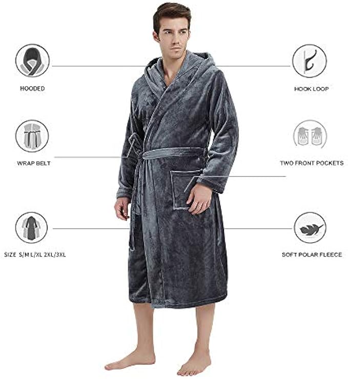 ★PERFECT GIFT- Mens fleece hooded robes are the warmest and most comfortable gifts. As a perfect gift, you can give it to your father,brother or boyfriend. When put on this warm plush bathrobe, it will put body in a relaxed state and enjoy every moment. Spoil a friend,family or beloved with this mens flannel hooded robe as a gift for anniversaries, Thanksgiving, Christmas and so on.