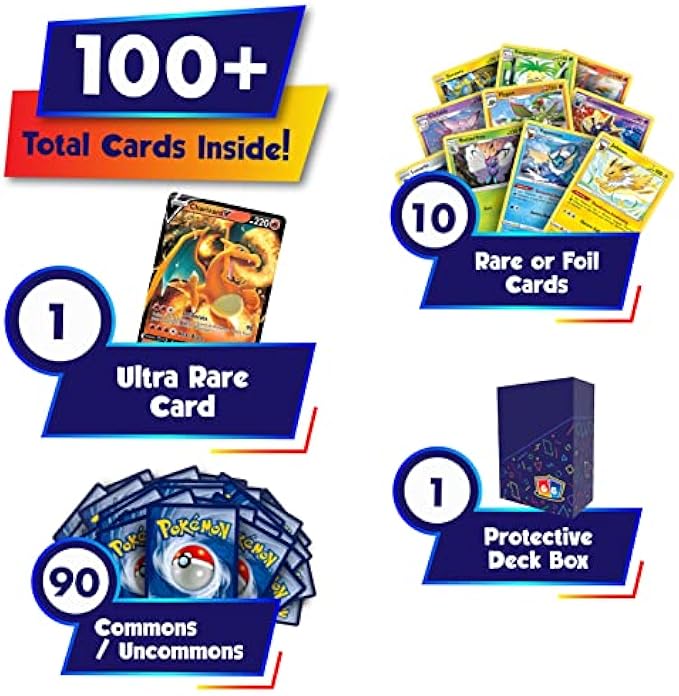 ⚡ PERFECT FOR EVERY PKMN PLAYER: Expand your collection, start a new deck, or get back in the game with our premium PKMN TCG 100 count PKMN card set. Each bundle is filled with variety and value. No two packs are the same!
