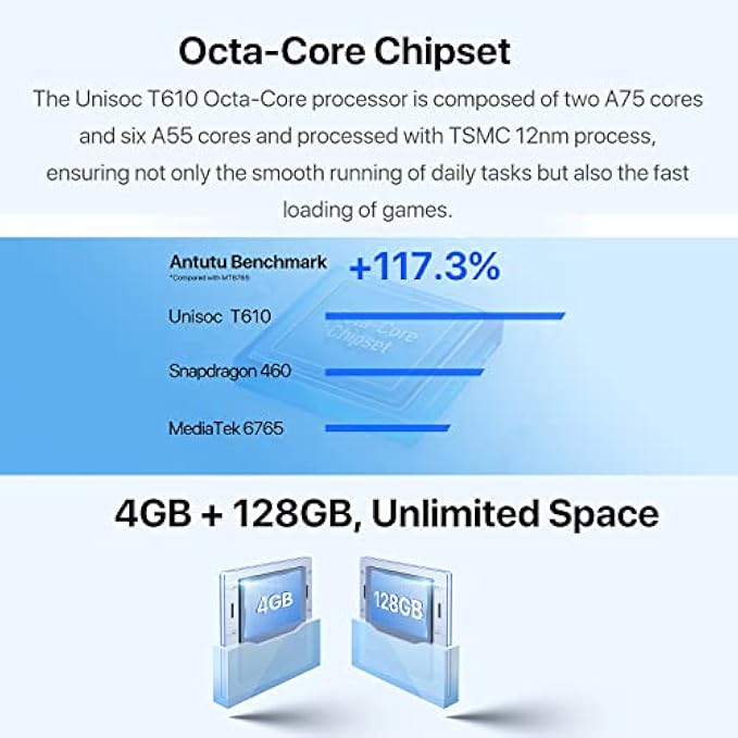 ★【Built-in Memory & Android 11 Smart Phone】Dual sim unlocked cell phone UMIDIGI F3 SE is equipped with the newest Android 11 system, Unisoc T610 octa-core processor (Cortex-A75*2, Cortex-A55*6) CPU and built-in memory RAM 4GB ROM. It comes with 128GB and also supports dual Nano-SIM or Nano-SIM+ dedicated Micro-SD expansion memory cards. It greatly improves performance and provides octa-core operating frequency up to 2GHz, reducing lag in apps, web browsing and games.