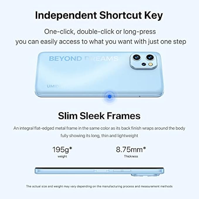 • 【Premium design& shining curved design】 The smartphone 2022 is with a shining curved composite finish and is lightweight, bringing you a thinner and more comfortable hand feeling. Besides, the customized programmable button allows quick access to the apps in one step.