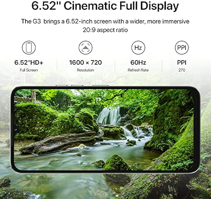 ANDROID 13 MOBILE PHONE : With the latest Android 13 operating system, The latest Android 13 has many improvements, adding new features, greater emphasis on privacy and security, more secure protection of your data, more diverse themes, enabling users to create personalized interfaces and provide more convenient services for each user. 5150MAH MEGA BATTERY:G3 Unlocked phones offer extremely high performance in terms of battery life and charging efficiency. Equipped with an above-average 5150mAh battery, it gives you all the power you need to get through the day. Totally relieves the anxiety of running out of power and keeps the whole day fun 6.52IN LARGE SCREEN PHONE:The unlocked mobile phone adopts a 6.52in ultra HD screen ,6.52-inch screen is wider, 120Hz Touch Sampling Rate and the 20:9 aspect ratio and dual speaker design allow you to enjoy a cinema like viewing experience,Immerse yourself in all your favorite movies, TV shows, and video games. 720*1600 resolution, each picture presents a vivid natural color, bring incredible immersive POWERFUL SYSTEM:G3 is equipped with a 4x ARM Cortex-A53 Quad-Core processor, using an advanced 12nm process to achieve a balance between performance and power consumption. In detail, ,GPU with new generation arm G57 architecture, and supports eMMC 5.1 fast flash interface which brings faster file transfer. LARGE STORAGE: Unlocked Cell Phone G3 contains all the performance . 4GB of RAM and an Quad-Core processor ensure that your applications and content run smoothly, allowing you to manage multitasking without stalling, without lag, ensuring system stability and a pleasant mobile experience. The 64GB of built-in storage ensures you can take all your favorite movies, TV shows, games and photos with you. If you need more storage? Then you can use a microSD card to expand it to 1TB. 13MP HIGH PIXEL AND SECURE FAST UNLOCK: Equipped with 13MP high resolution rear camera and excellent AI algorithm image optimization, you can easily face a variety of shooting scenes, take sharp photos to make your works more vivid and clear,5MP front camera, perfect selfie camera, make your photos more striking. With side fingerprint and face unlock support, it's faster and easier to unlock the phone in the blink of an eye without compromising security