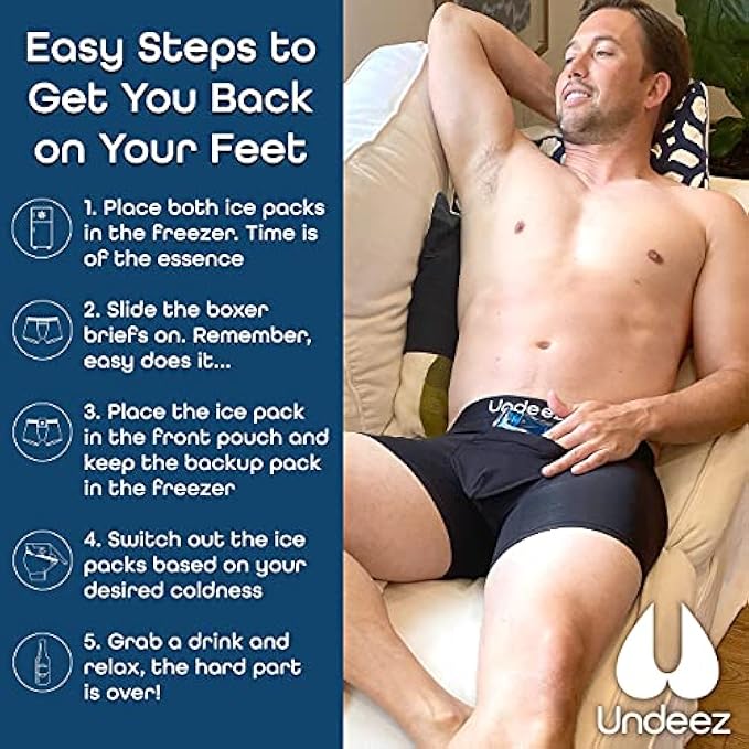 Undeez Vasectomy Underwear - Comes With 2-Custom Fit Ice Packs and Snug Boxer Briefs For Testicular Support and Pain Relief