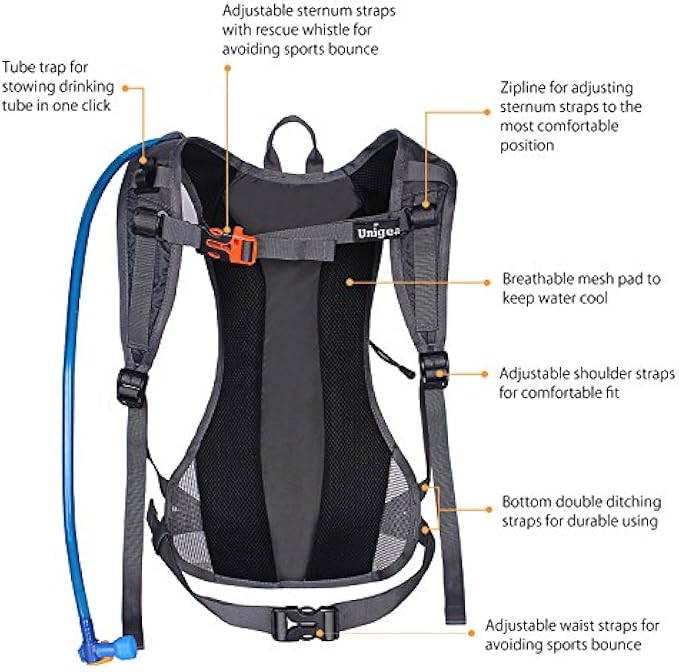 REPLACEABLE 2L BLADDER: Includes a 2 Liter/ 70z BPA free bladder which keeps you hydrated. Its air flow system also keeps the water fairly cool. Includes screw cap for a adding small ice cubes for cooker drink for one day hiking, cycling, running or riding.