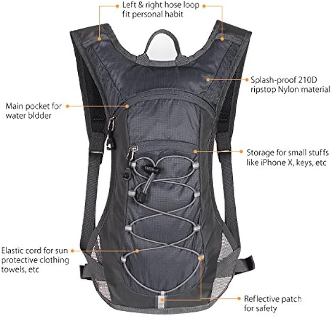 LIGHTWEIGHT & SPLASH RESISTANCE & DURABLE: Upgraded lightweight and Splash Resistance nylon with 2 Liter balder (in total 1.1 lb) to reduce your load and protect your belongs stay dry in light rain, and its double built-in waist straps improve its wear and tear resistance to ensure the pack’s life last longer.