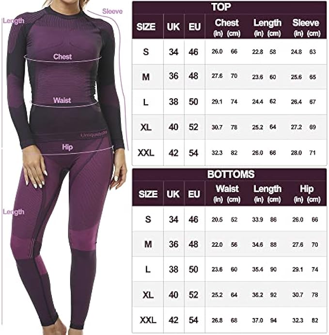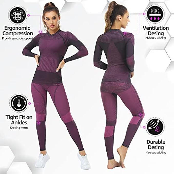UNIQUEBELLA Womens Thermal Underwear, Thermal Base Layers Women - Ski Wear Ladies Compression Athletic Long Johns Skins Set
