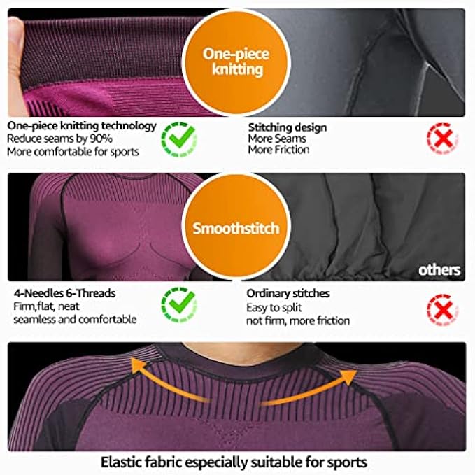 • PROFESSIONAL SEAMLESS PROCESSING GUARANTEES FREEDOM OF MOVEMENT: The ladies underwear set is designed with four-way stretch compression for your freedom during outdoor activities, never have you feel bound. There is no label on the neckline, which is hard and scratchy, but the information is printed with eco-friendly pigments. Our seamless technology ensures no friction during movement.