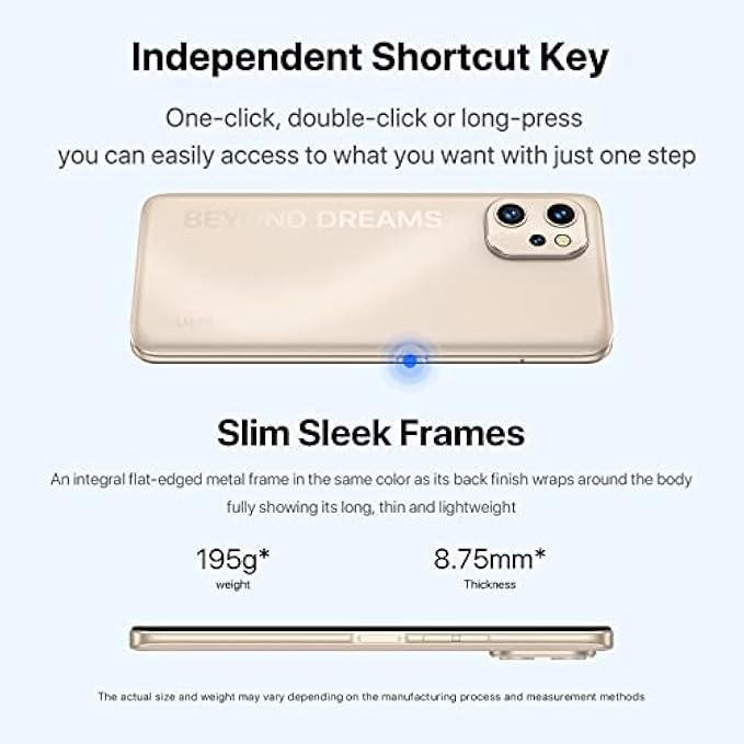 • 【Premium design& shining curved design】 The smartphone 2022 is with a shining curved composite finish and is lightweight, bringing you a thinner and more comfortable hand feeling. Besides, the customized programmable button allows quick access to the apps in one step.