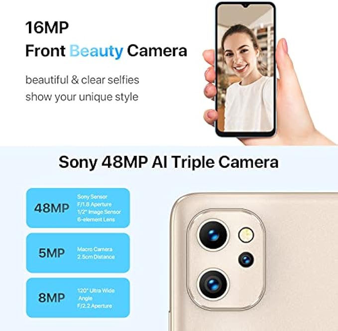 • 【Capture your important moment】 UMIDIGI smartphones F3S with Sony 48MP AI triple camera brings more details to your creativity. Ultra-clear main camera, front beauty camera, 5MP macro camera, and super night mode offer a better photography experience.