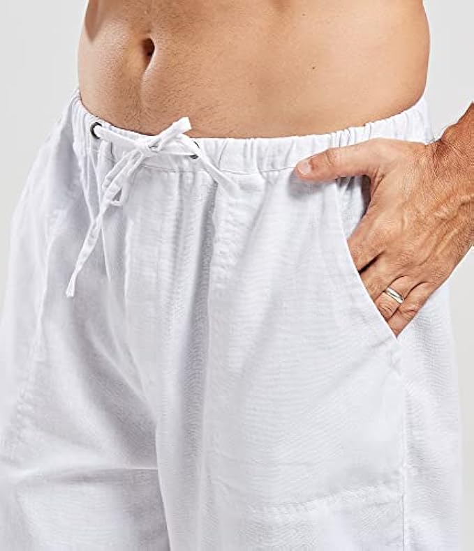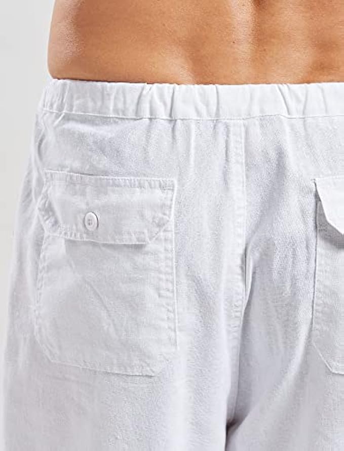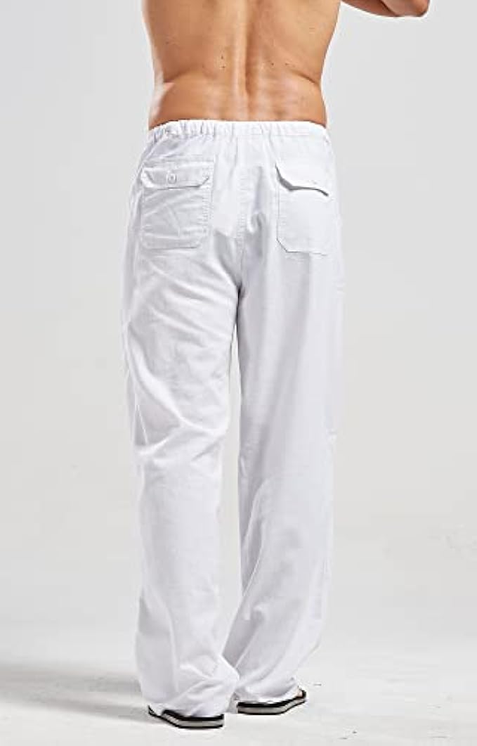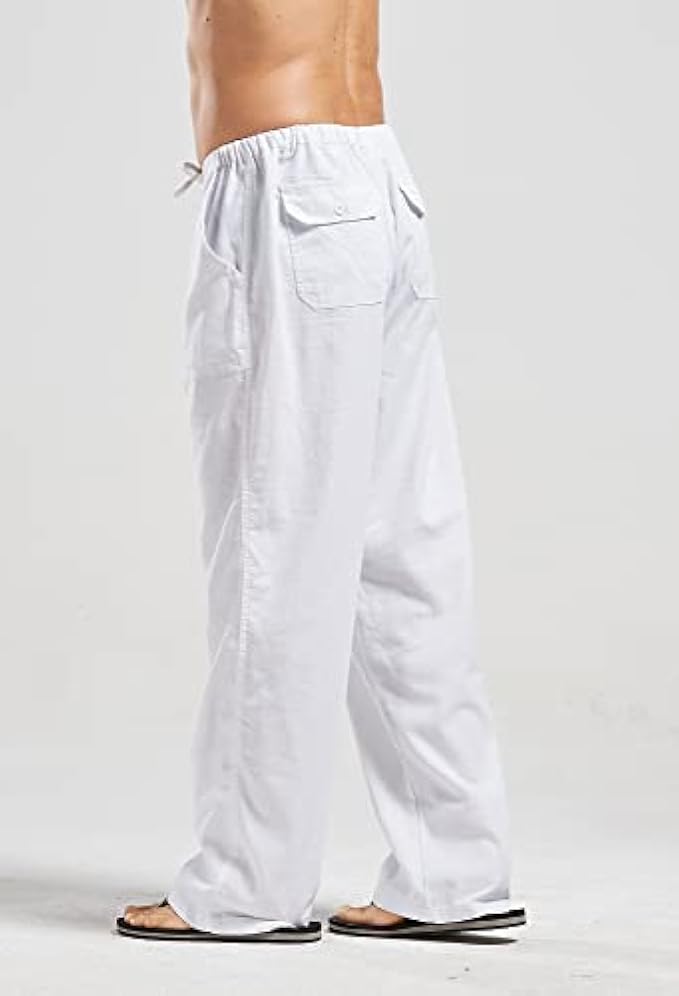 utcoco Qiuse Men's Casual Loose Fit Straight-Legs Stretchy Waist Beach Pants